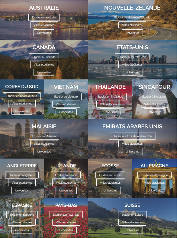 Une première sélection de programmes vous sera donnée d'où l'importance de bien expliquer votre projet et vos attentes. L'équipe de StudiesUP tâchera de trouver la destination et le programme le plus adapté à votre profil en tenant compte également de vos contraintes budgétaires.