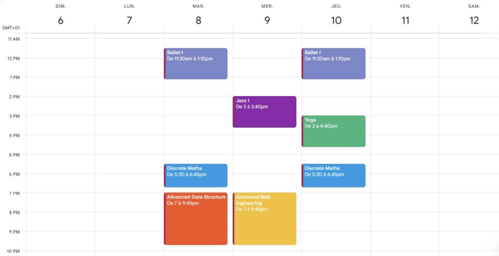 Discrete Maths (MATH 326) : 2 séances de 1h15 par semaine.